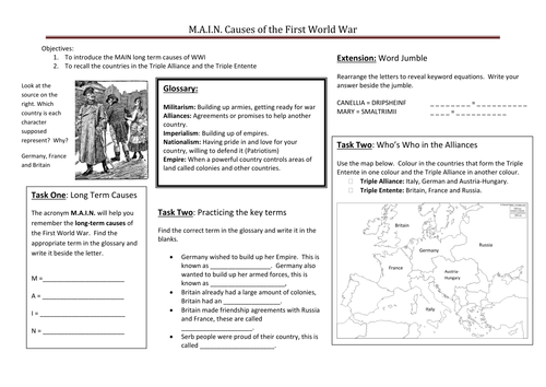 The first of its six parts aired on 1 september 2003 in the united kingdom. Main causes of world war 1 worksheet. World war i essay questions worksheets : The road to global war worksheet. Some of the worksheets for this concept are world war one information and activity work, causes of world war one, world war i, a day in the trenches student work, world war i, the main events of the first world war student a work, second world war, causes of world war i. We look at what specifically caused the war. Over the top!(trench warfare simulation)pages: Use a different colour to represent the triple alliance. Causes of world war one; World war 1 worksheets complete 40 page guide to world war 1. World war i blank causes and effects chart : Simply because you should give programs a single genuine and dependable supply, we all current helpful information on a variety of subject areas in addition to topics. This entire unit plan will give your students or children the entire education they need on the great war.